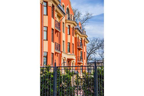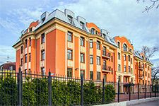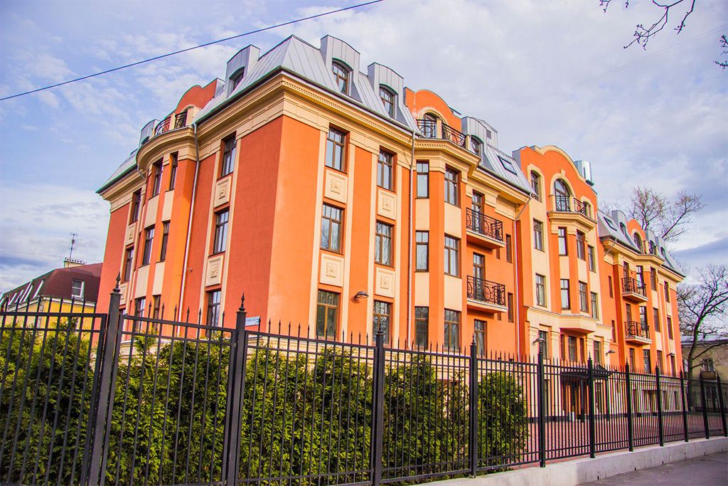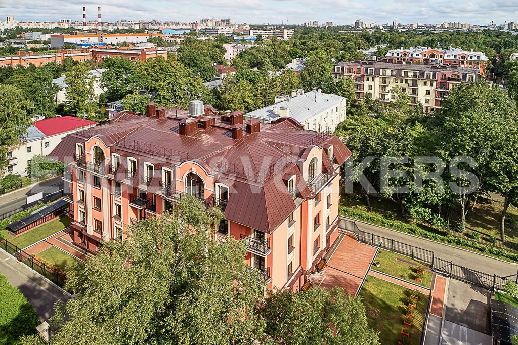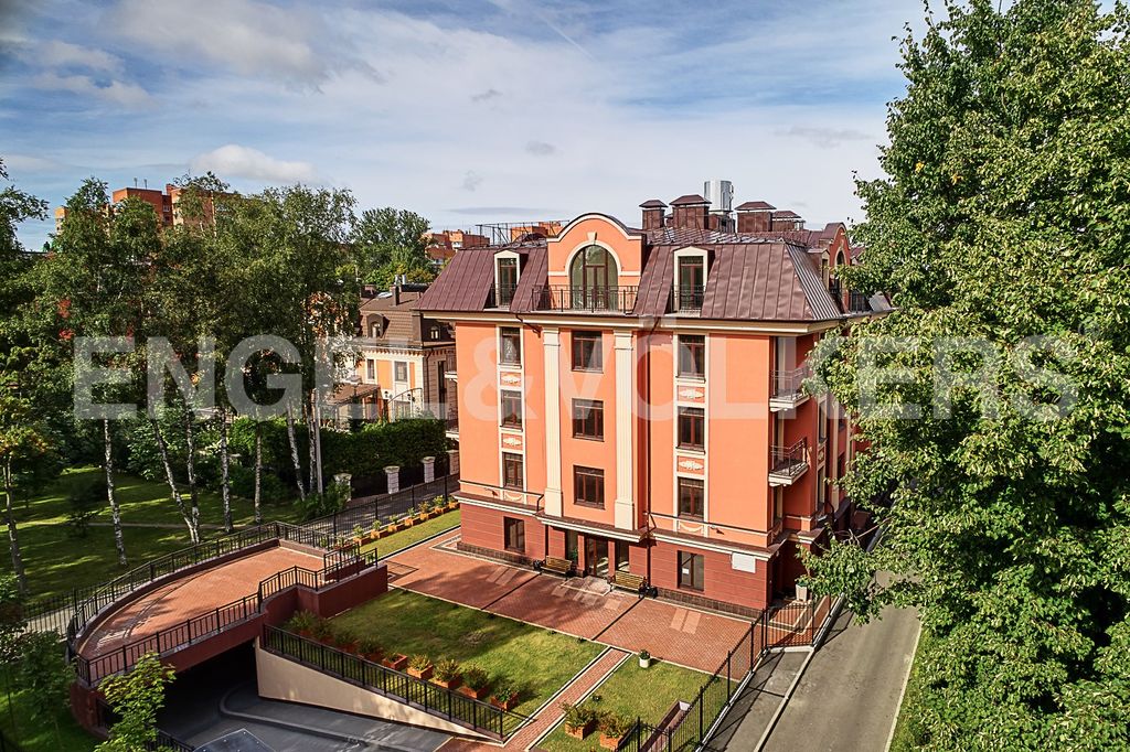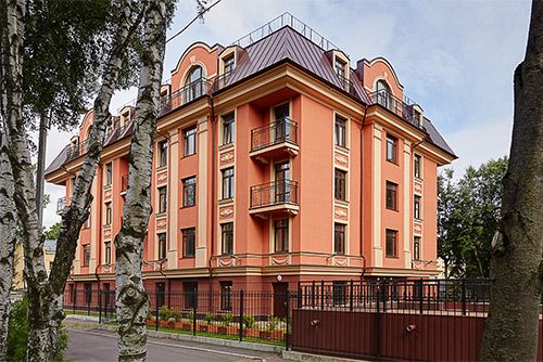 Продолжает концепцию малоэтажного комплекса в стиле неоклассицизма. Камерный дом на 16 квартир и подземной автостоянкой на 28 парковочных мест. Закрытый охраняемый внутренний двор. Заканчивается благоустройство территории в соответствии с авторским дизайн-проектом. Дом сдан, собственность, идет передача ключей. В продаже осталось 0 квартиры площадью от 114 м2.